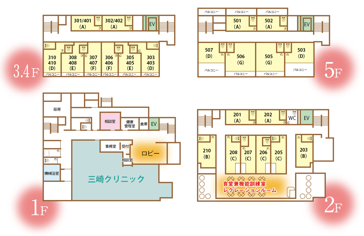 施設1階には、内科・消化器科・小児科・皮膚科の三崎クリニックが併設されています。医療連携を行っており施設内での在宅診療も可能でより良い環境での生活をしていただけます。
