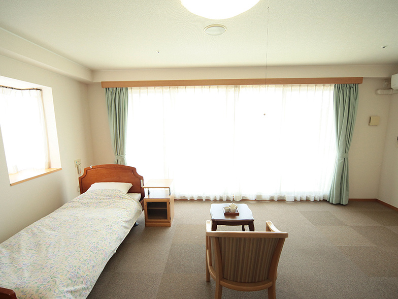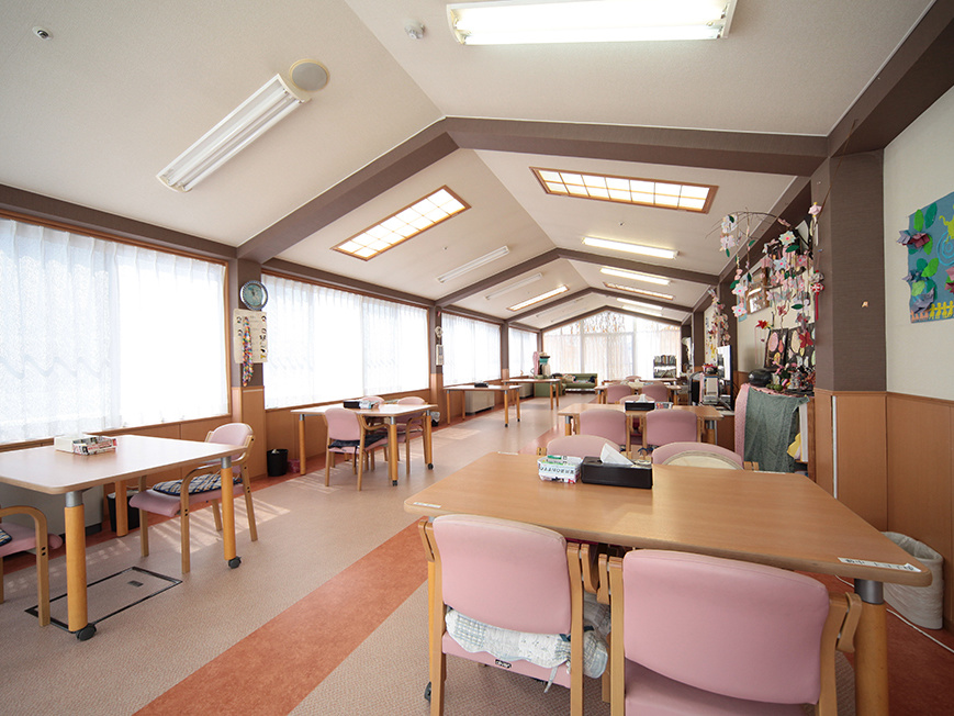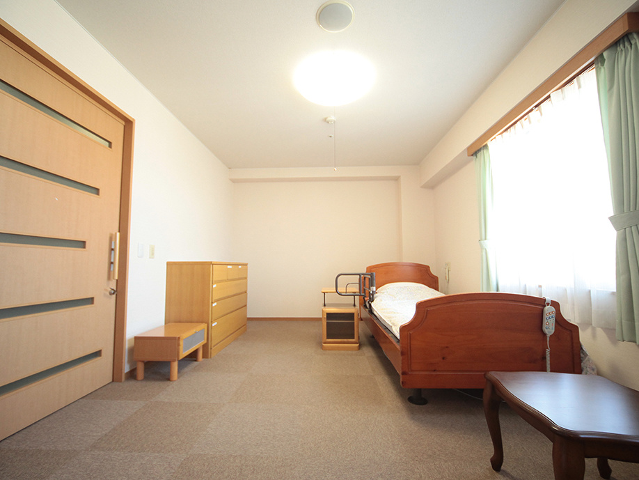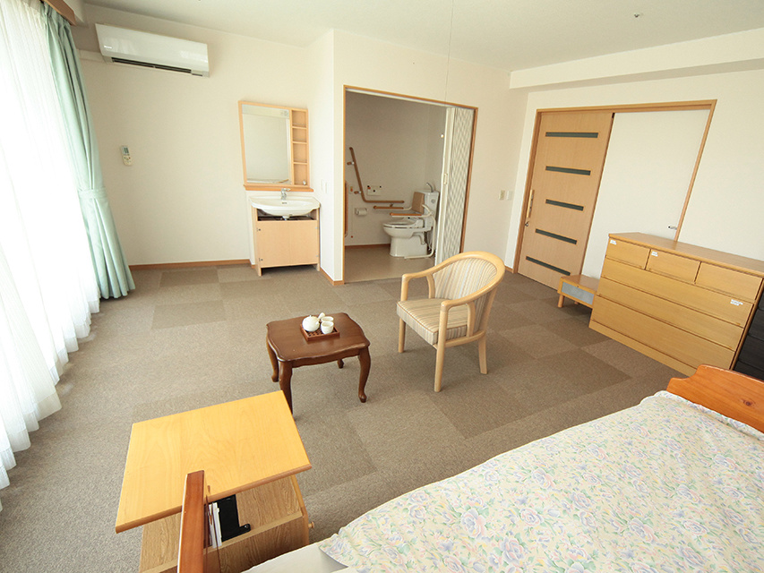 5階建、バリアフリー構造。車椅子をご利用の方でもエレベーターで各階に移動することが可能です。陽当たりの良好な居室、プライバシーを意識した個別浴槽対応、介護度が高くなった場合でも入浴可能な特殊浴槽、カラオケ・イベント・日常での共有空間として大きな共用スペース、施設にて様々な設備をご用意しております。2台のベッドを収容可能な居室ではご夫婦での入居も可能です。